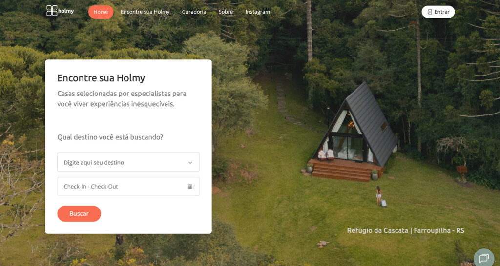A Holmy é uma plataforma de aluguel de casas de temporada criada e administrada pelas jornalistas e empresárias do turismo hoteleiro @anna.laura  e @tatisisti (@triptofollow). Em 2021, elas uniram a experiência que já tinham no mercado de viagens para selecionar hospedagens diferenciadas e conectar viajantes a casas especiais e experiências únicas – seja para uma viagem romântica, um descanso em família, um retiro na natureza, home office com vista ou um fim de semana “reset”.