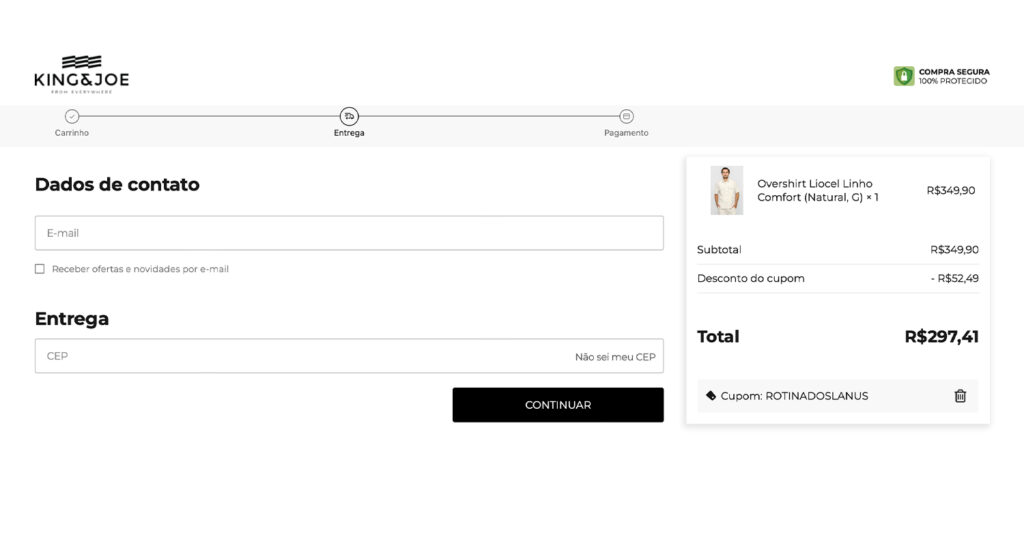 - Como usar o cupom no site da King&Joe?