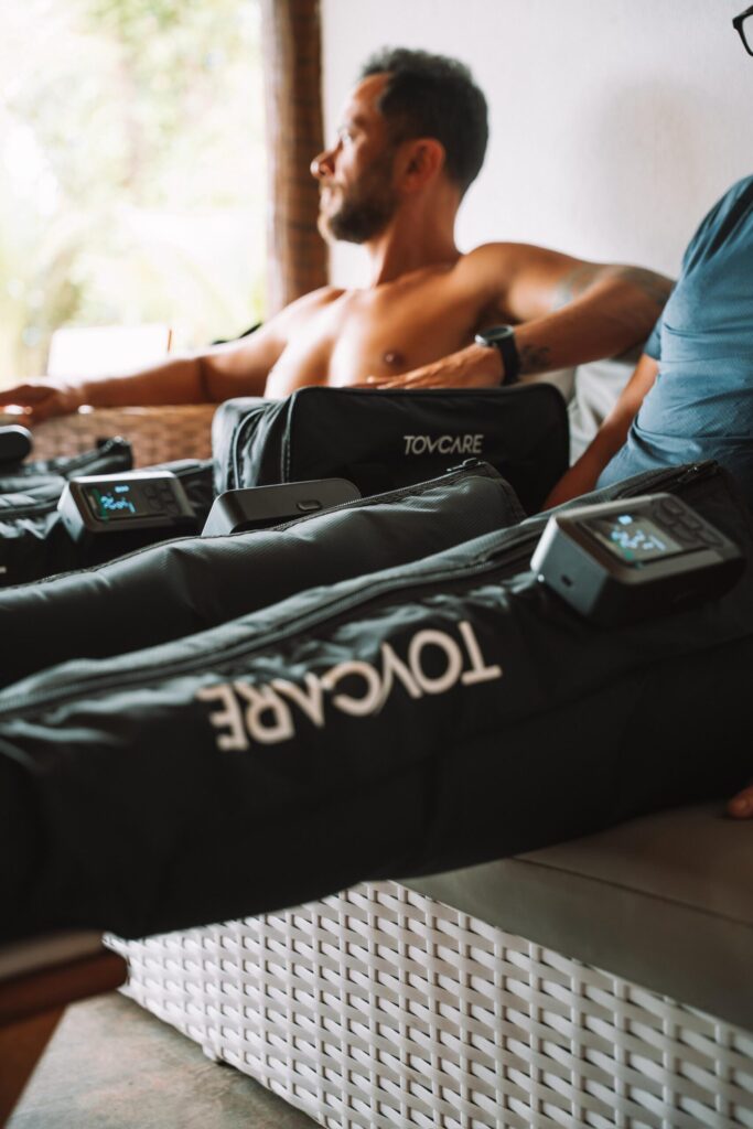 - Prevenção de lesões: Quando a musculatura se recupera melhor e a circulação funciona de forma mais eficiente, o risco de sobrecarga diminui. Isso ajuda a evitar lesões comuns, como distensões, câimbras, inflamações e dores persistentes causadas pelo acúmulo de fadiga. Para quem treina com frequência, essa prevenção é essencial para manter consistência e evitar pausas indesejadas.