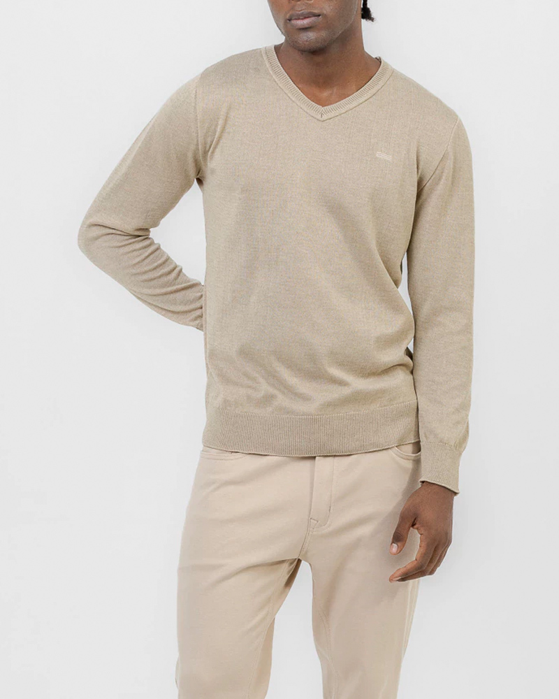 Com modelagem slim e gola em V, tem caimento ajustado que valoriza o corpo. O tricot de alta qualidade garante toque macio e visual elegante, ideal para compor desde produções casuais até looks mais arrumados. Atemporal e versátil, é aquele tipo de suéter que nunca sai de moda e sempre acrescenta um ar sofisticado ao inverno masculino.