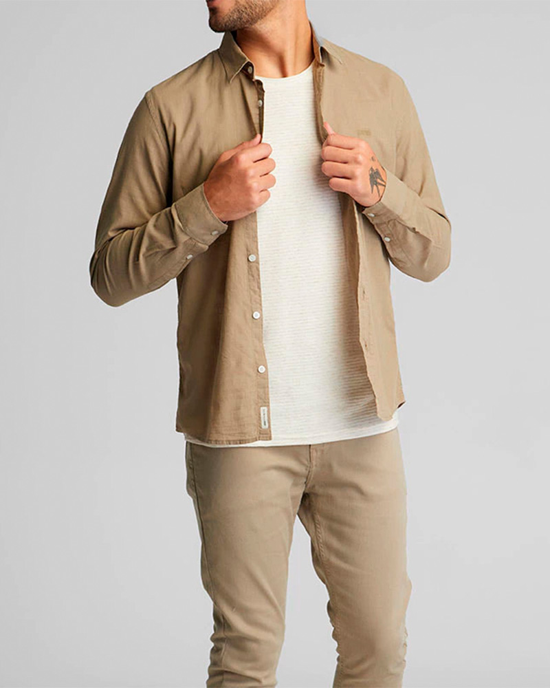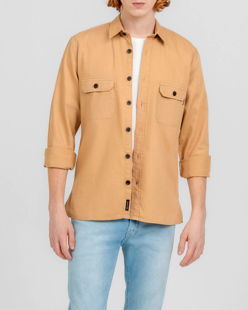 A camisa de sarja é daquelas peças que resolvem o look em segundos. Feita 100% em algodão, tem toque macio, é respirável e super confortável. Funciona bem fechada para um visual mais alinhado ou aberta sobre uma camiseta, como terceira peça, em um estilo mais casual. Com bolsos frontais e disponíveis em preto, verde militar e ocre, é prática, versátil e combina fácil com tudo.